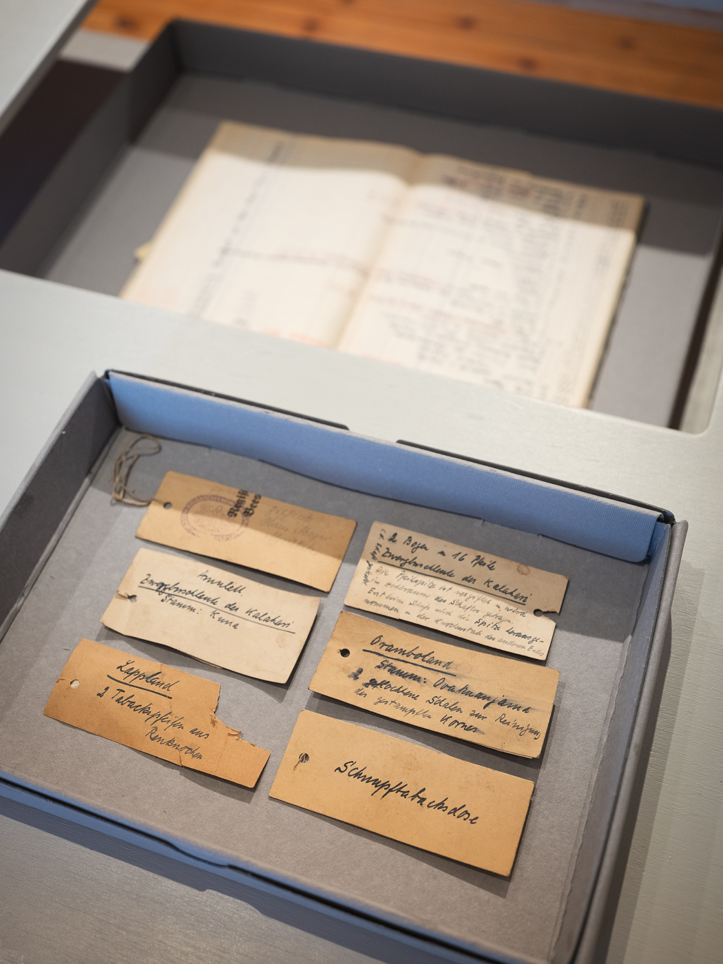 Die Ausstellung untersucht den Weg der Objekte in das Museum und lädt die Besucher*innen ein, sich über die Geschichte und Zukunft der Objekte Gedanken zu machen. In Form eine offenen Archivs haben die Besucher*innen Zugang zu den Objekten und zu den Ergebnissen der Nachforschungen.