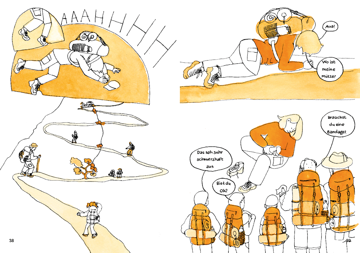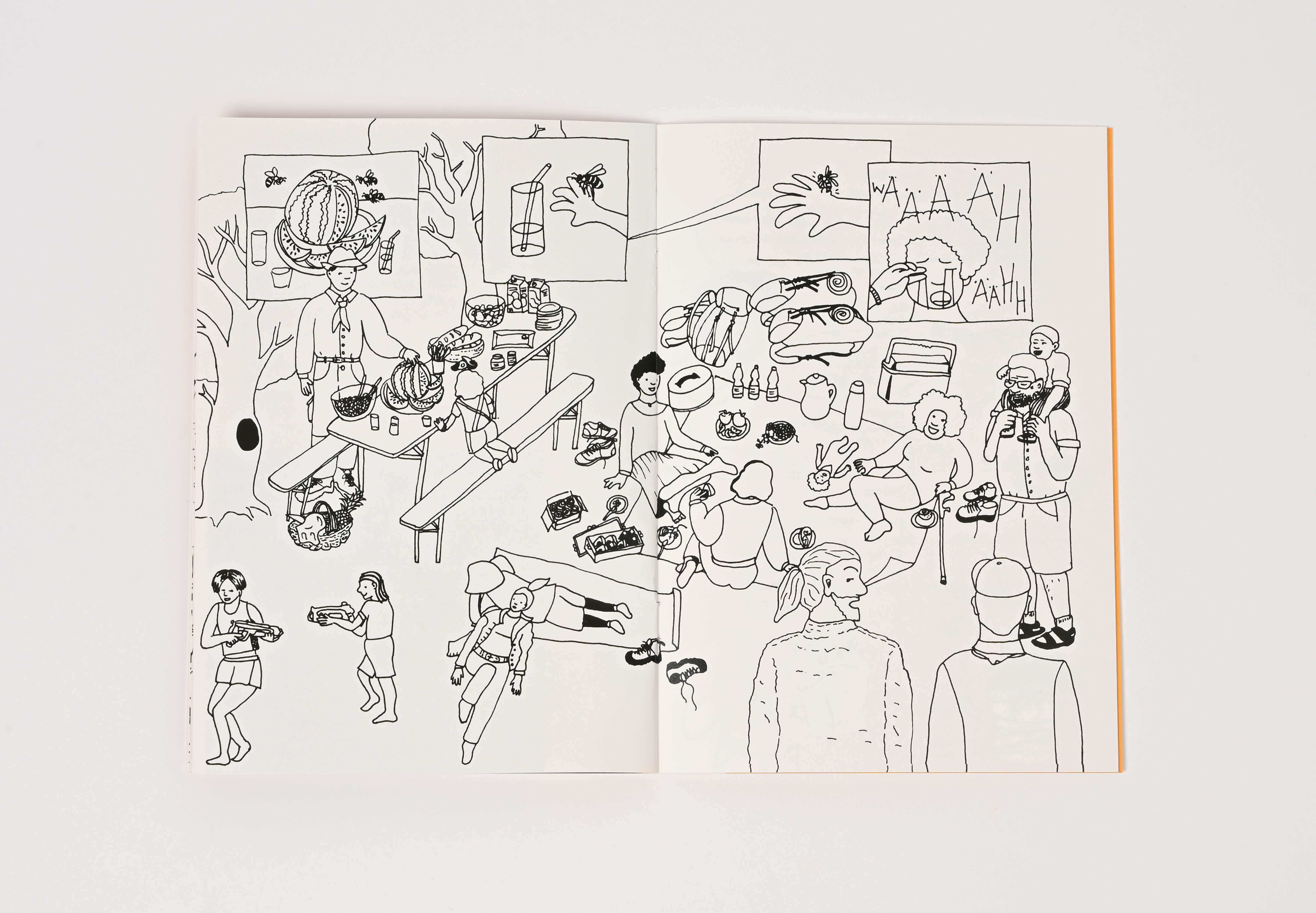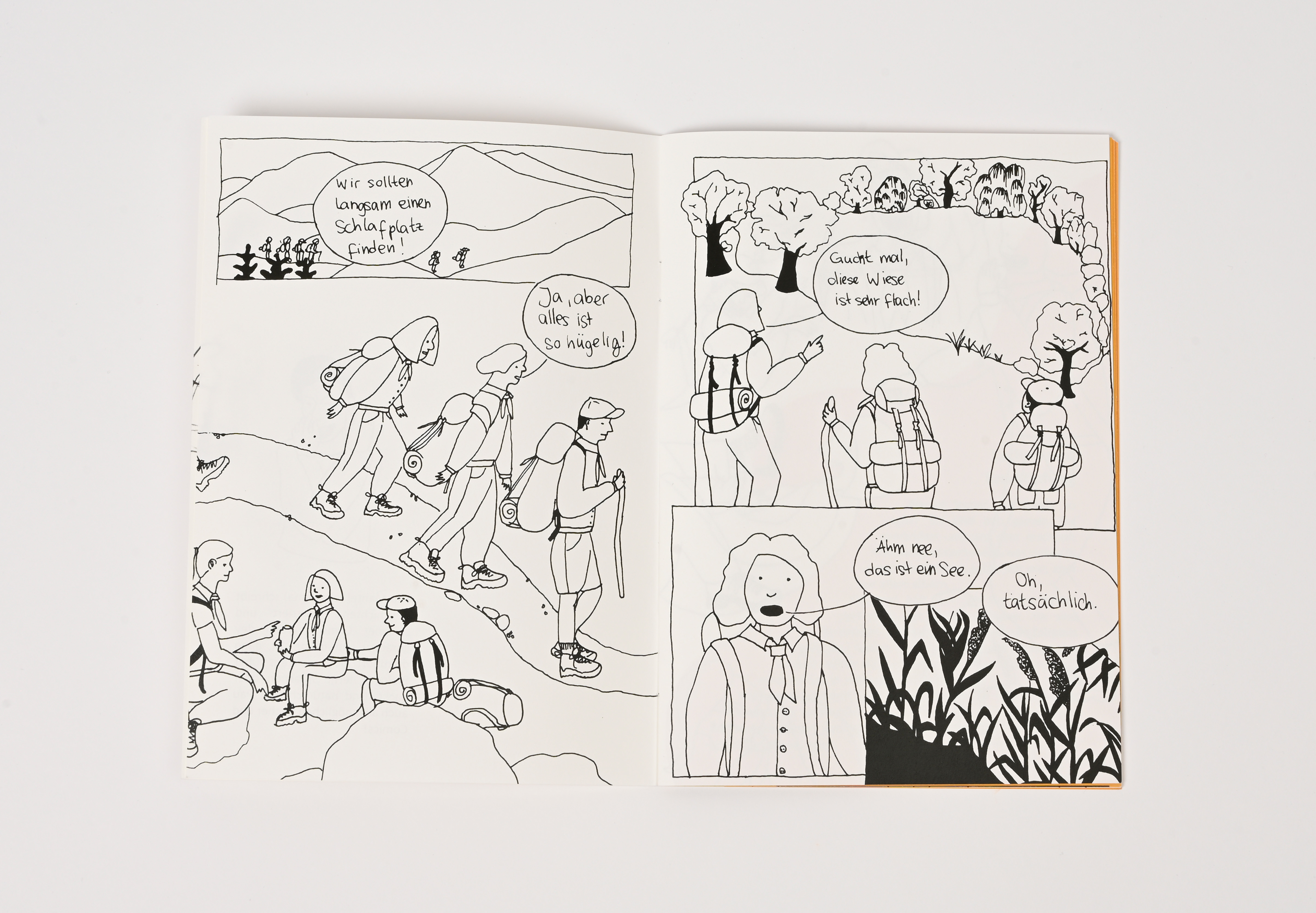 In dem Zine wechseln sich Comic-Stories von einem Picknick und einer Wanderung mit mehreren Kindern und deren Familien ab mit Erklärungen zu Themen, die in den Geschichten vorkommen. Es ist verbindet Elemente von Geschichtenbüchern mit Elementen von Sachbüchern.