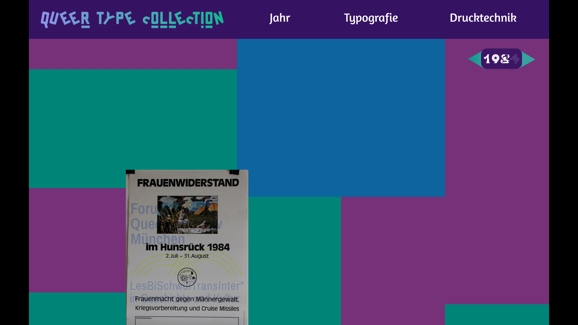 Die Queer Type Collection ist der Entwurf einer Website, die Demo-Plakate seit 1978 sammelt und aus zeitlichem, typografischen und drucktechnischen Gesichtspunkt sortiert.