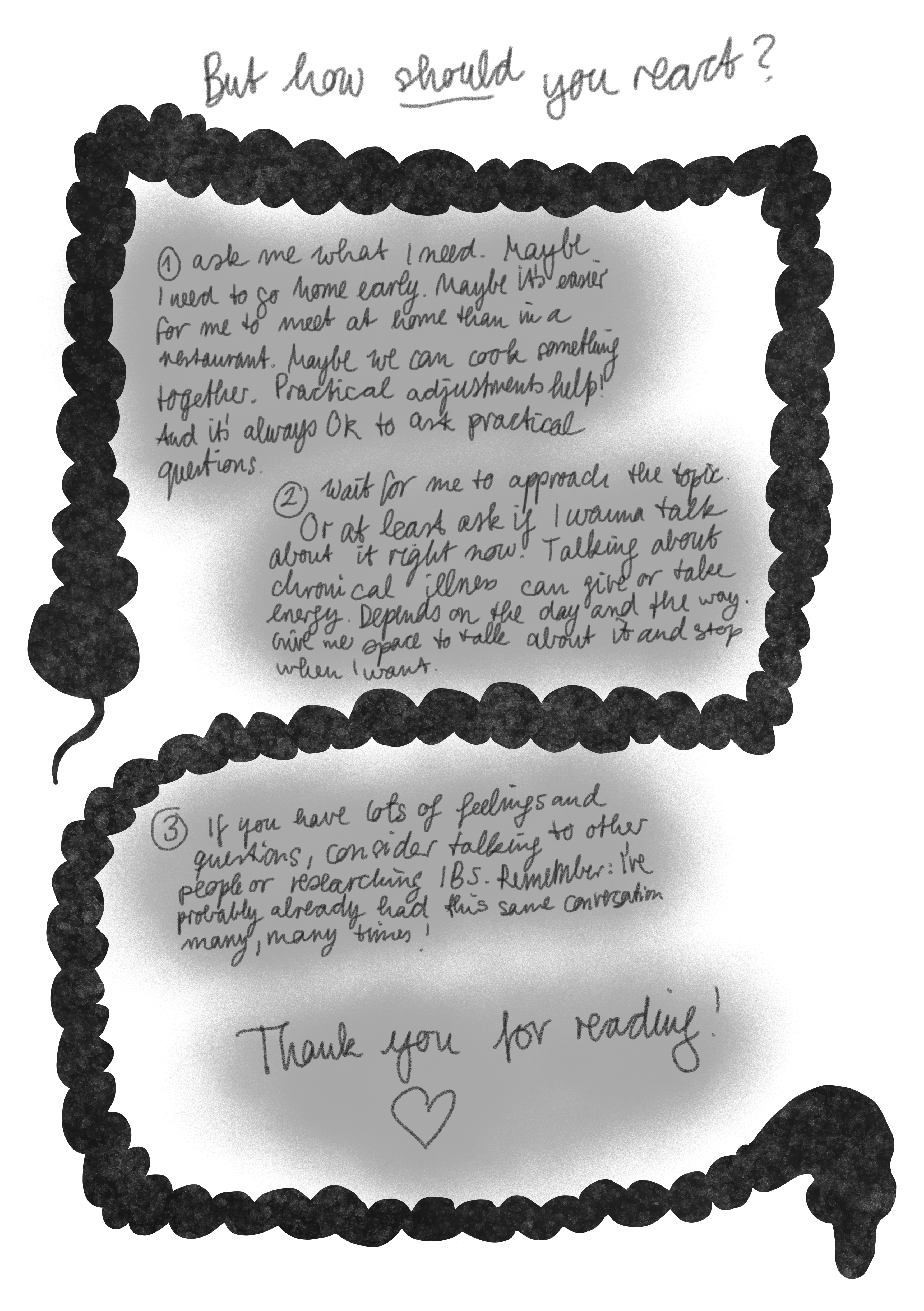 Ich habe Reizdarm. Dieses Thema nimmt viel Raum in meinem Leben ein und ich brauche Humor und künstlerische Auseinandersetzung, um damit klarzukommen.