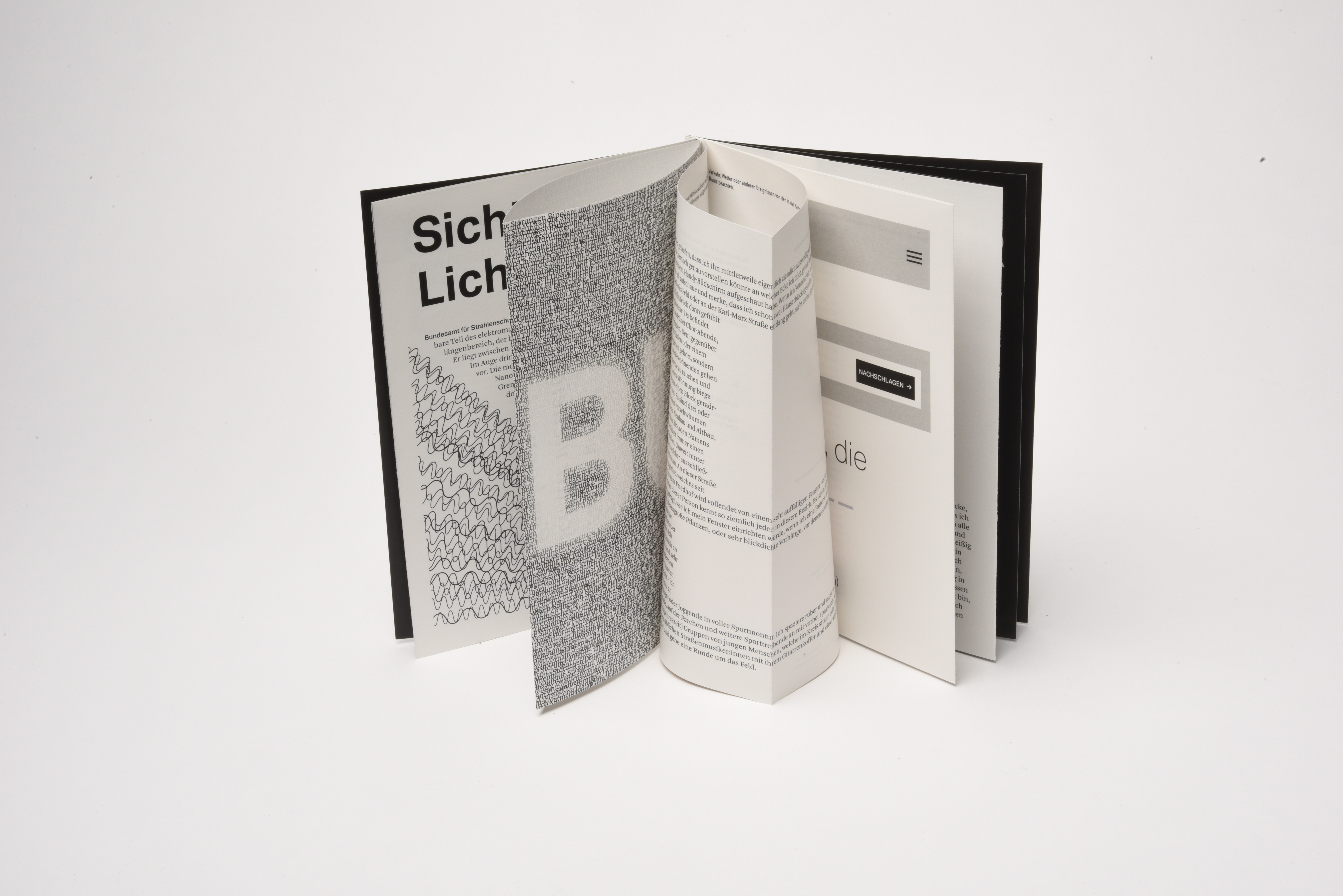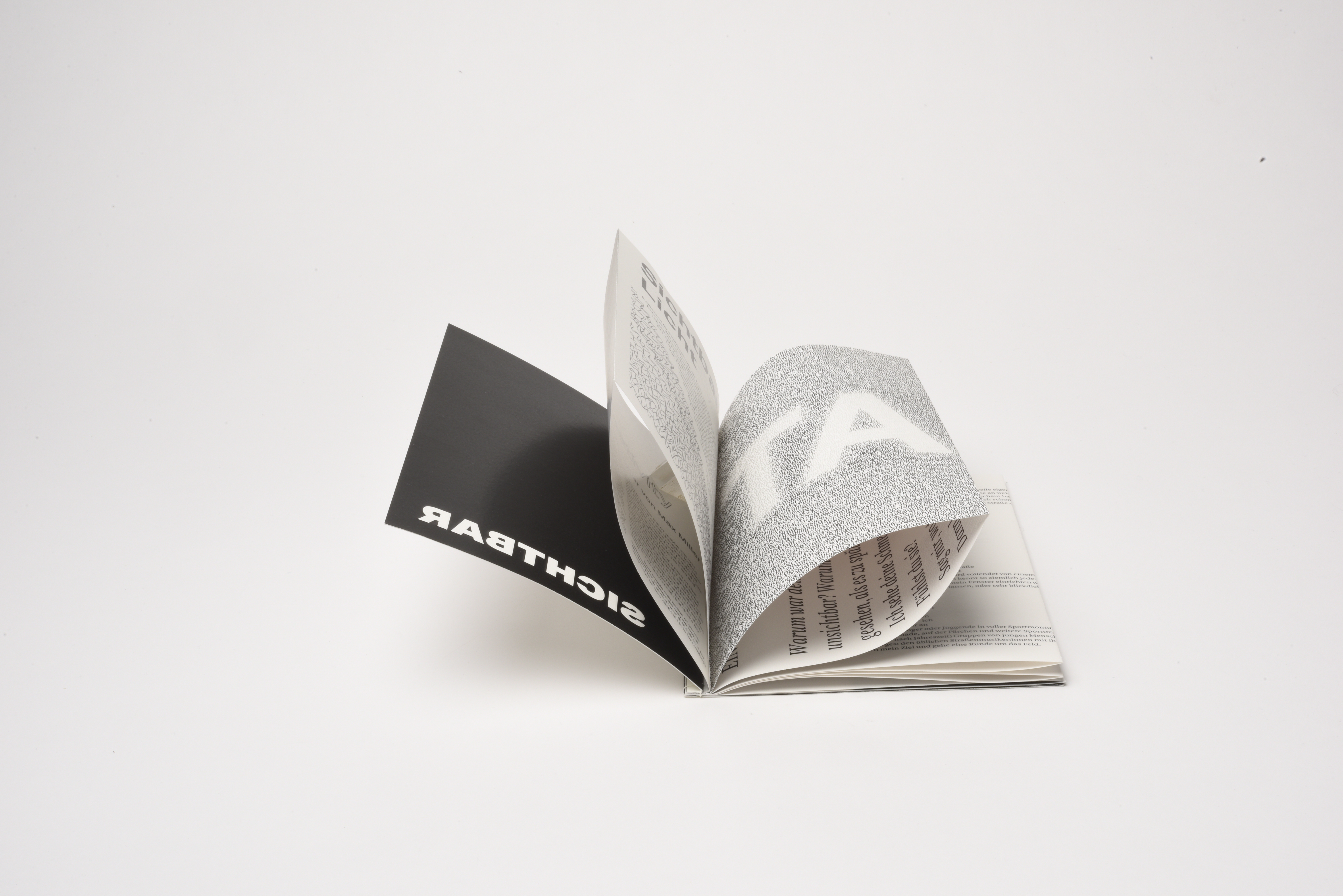 Das Zine “unsichtbar” ist eine Gruppenarbeit von Laura Lizama, Yewon Seo und mir. Wir haben uns typografisch mit unterschiedlichen Themen beschäftigt, die wir mit dem Wort “unsichtbar” verbinden. Mein Beiträge beschäftigen sich mit der unsichtbar in Berlin, einem Dunkelrestaurant, mit sichtbarem Licht und mit psychischen Krankheiten.