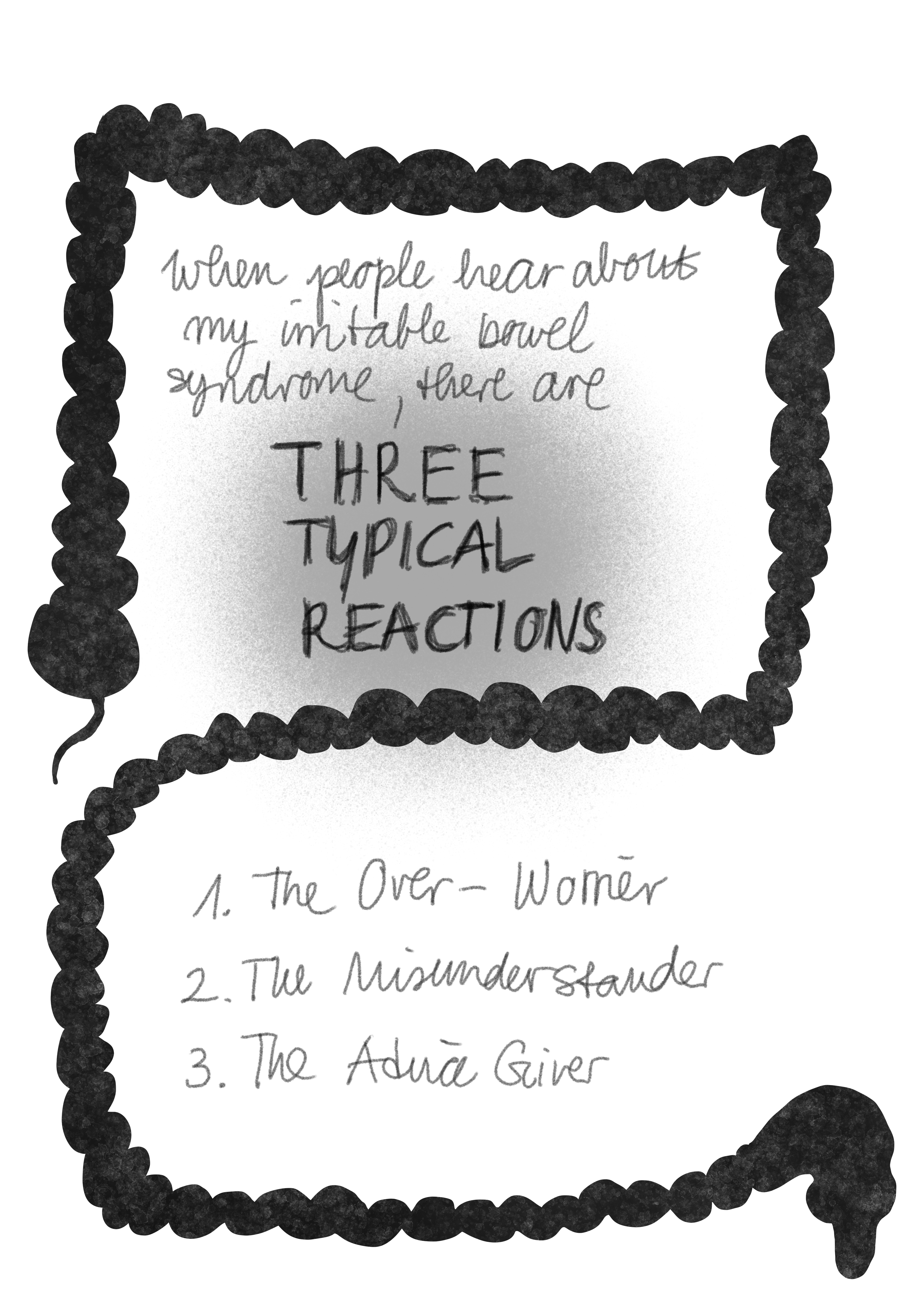 Ich habe Reizdarm. Dieses Thema nimmt viel Raum in meinem Leben ein und ich brauche Humor und künstlerische Auseinandersetzung, um damit klarzukommen.